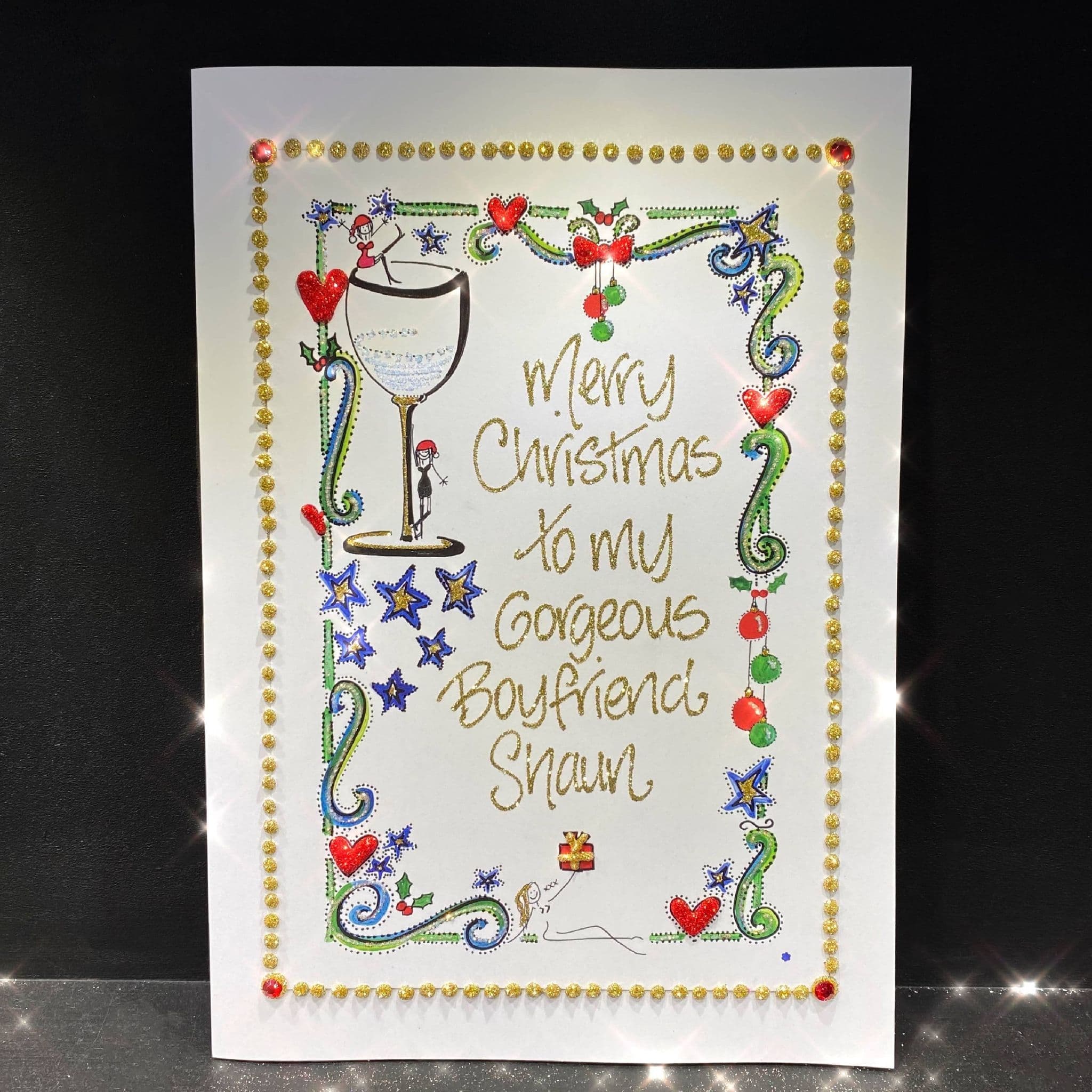This card is designed for your personalised message to be placed as shown. Suitable for a woman to give to her partner.