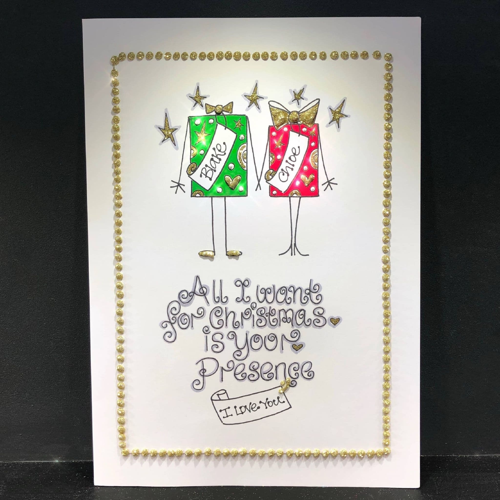 This card is designed for names & your personalised message to be placed in the tags as shown.