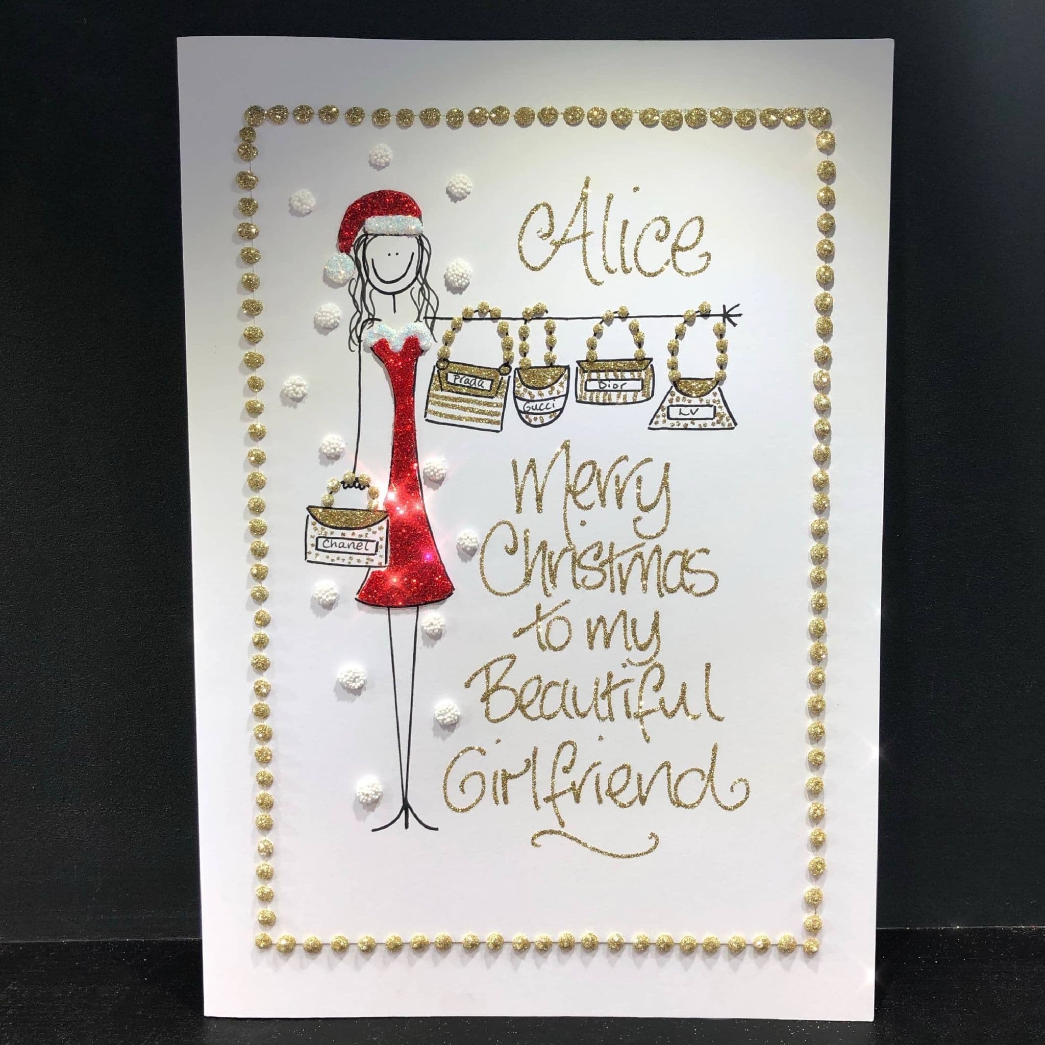 This card is designed for your unique Christmas message to be placed as shown. If you'd like different brands in the handbags, drop us an email at bizaracards.shop@gmail.com and we'll see what we can do for you.