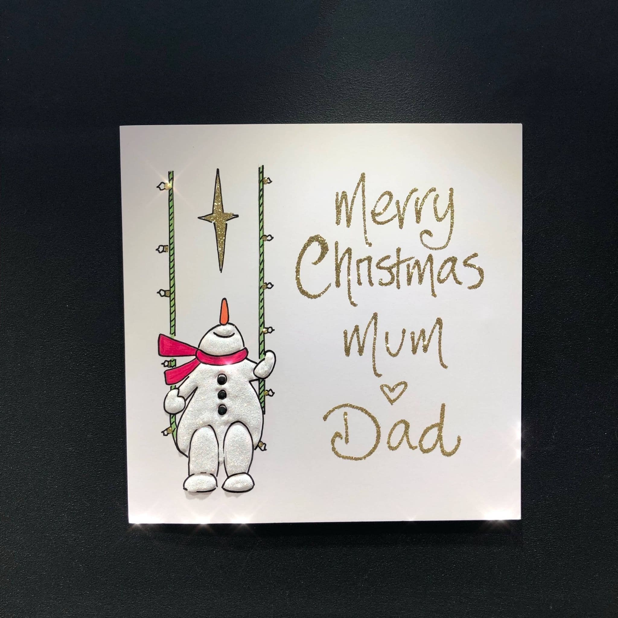 This card is designed for your customised message to be placed next to the snowman as shown.