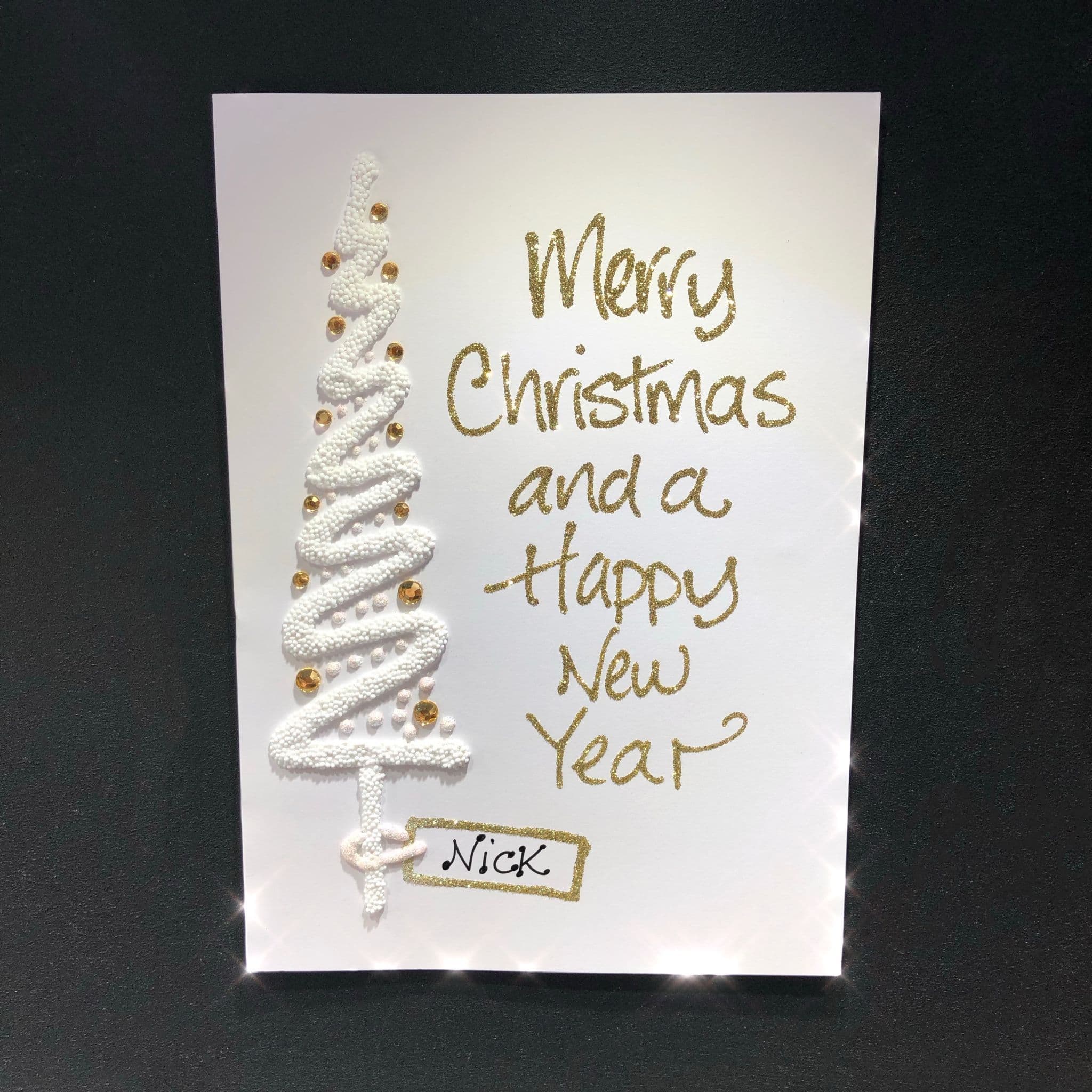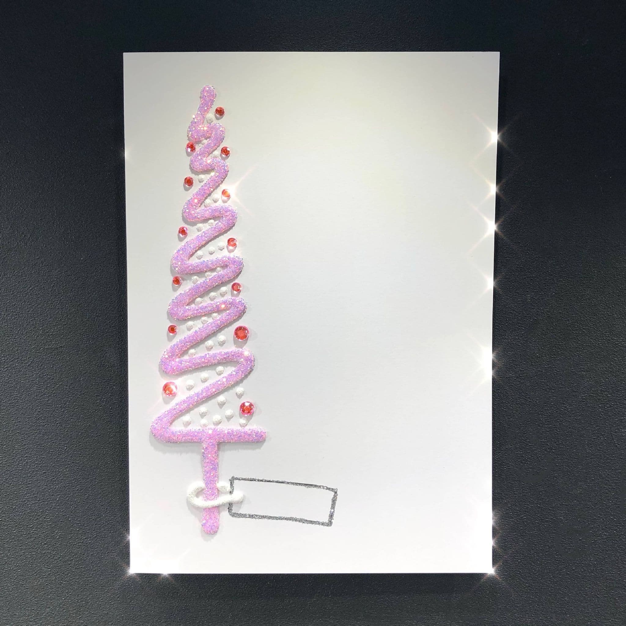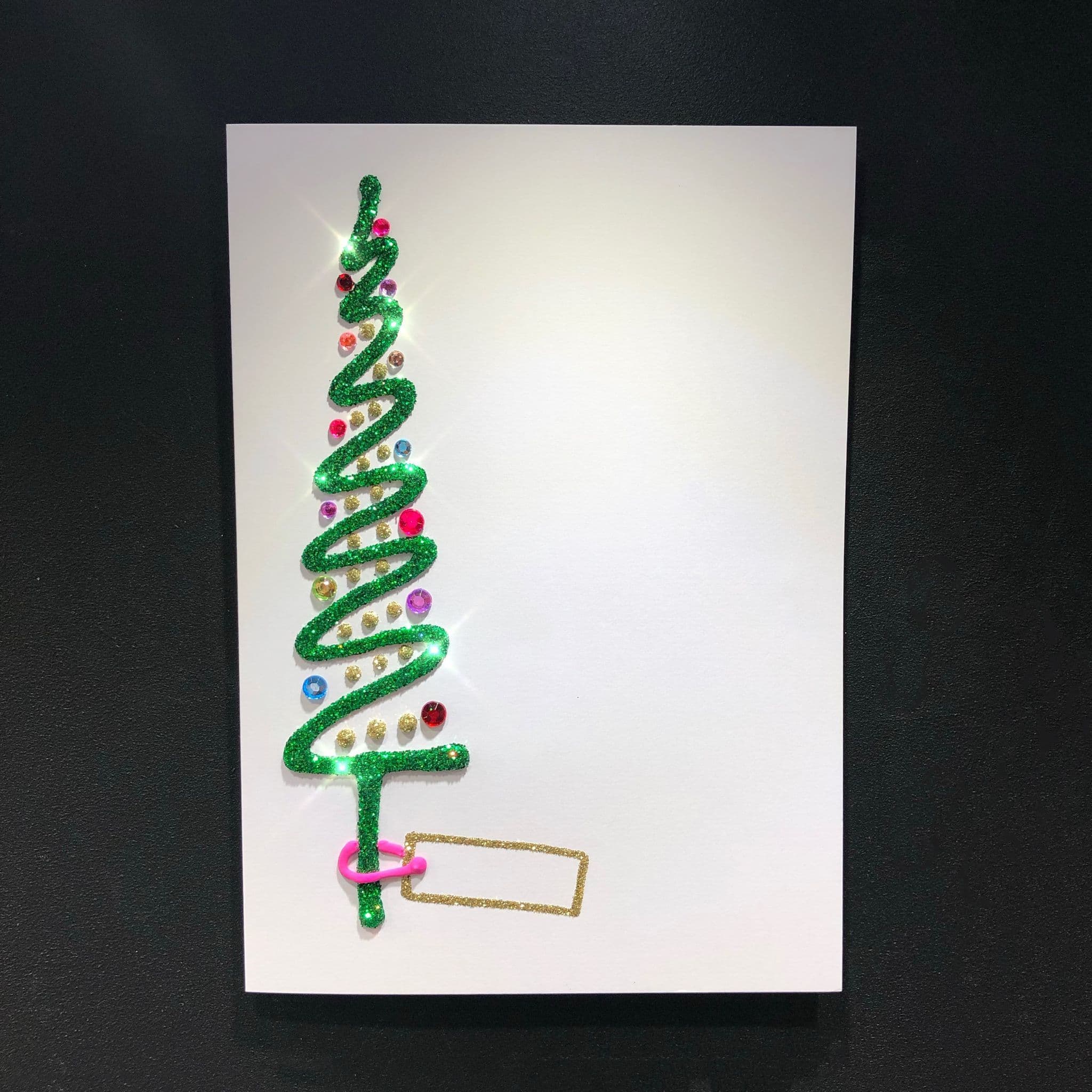 This card is designed for message to be place next to the tree and for a name to be included in the tag.