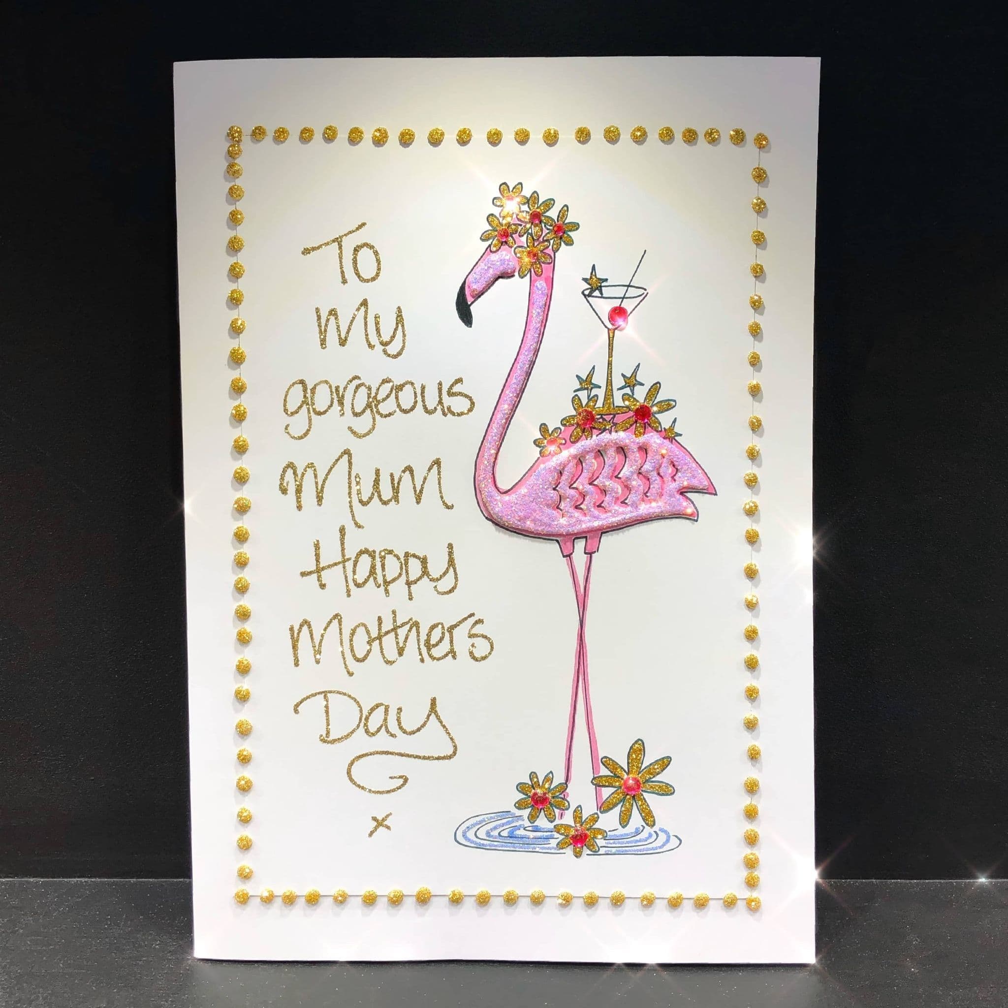 This card is designed for your own bespoke message to be placed to the side of the flamingo as shown. All our cards are handmade by real humans, so come colours may vary.