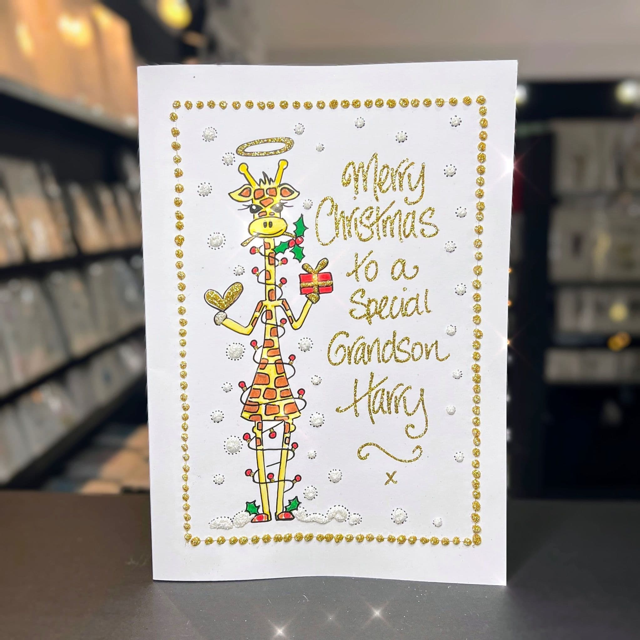This card is designed for your own special Christmas message to be placed to the side of the giraffe as shown.