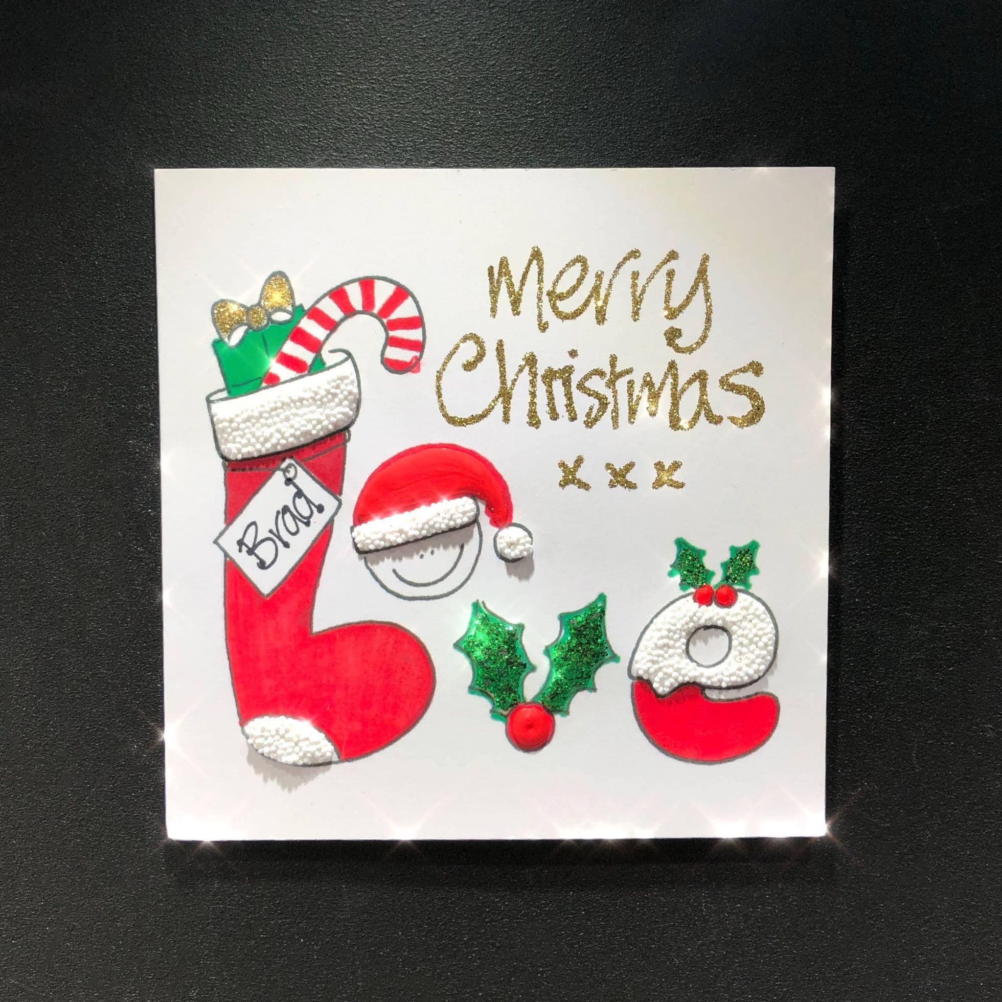 This card is designed for a name to be placed in the tag and your own Christmas message to be placed as shown.