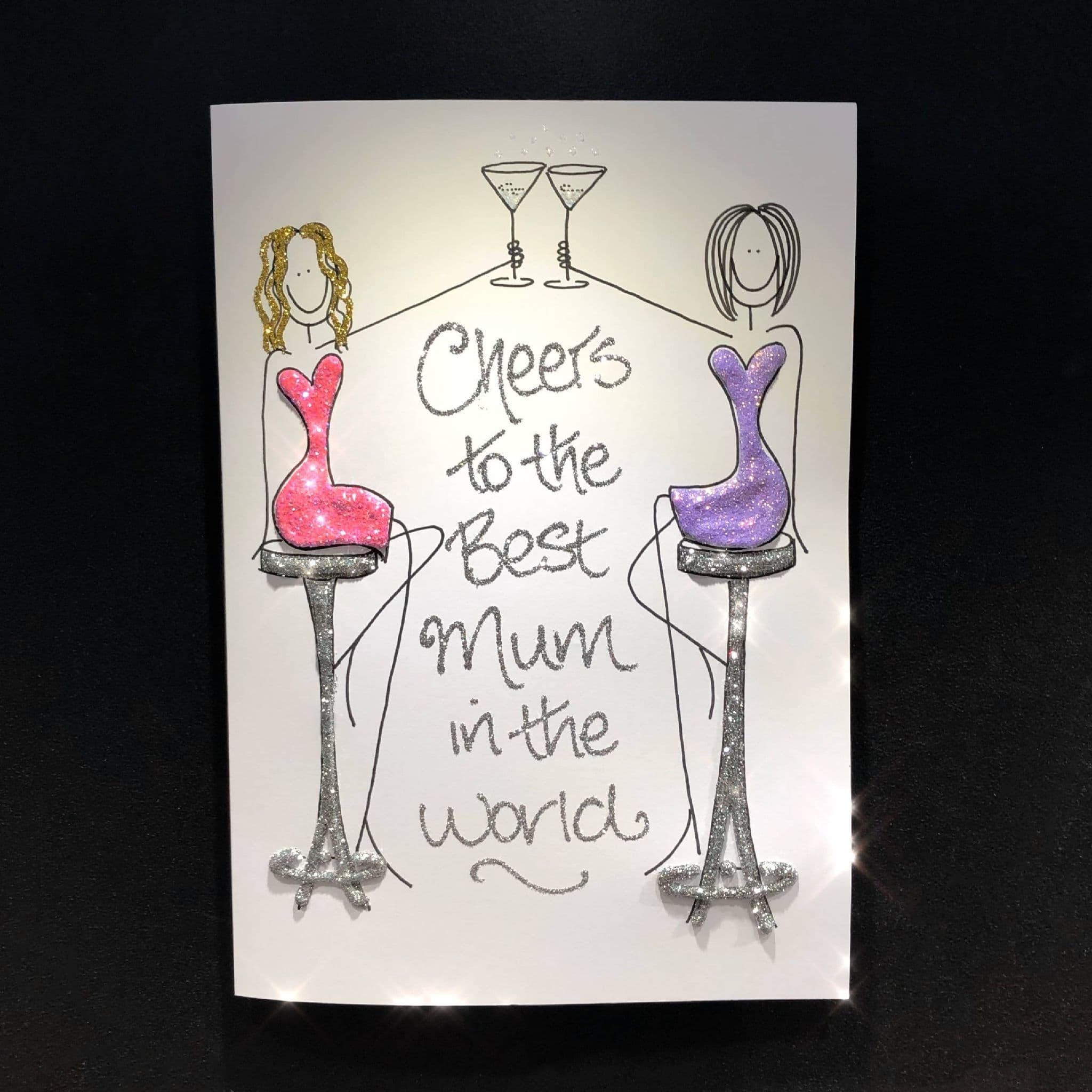 This card is designed for your message to be placed as shown. Perfect for a daughter to give to her mother. All our cards are hand decorated by humans, so some colours may vary.