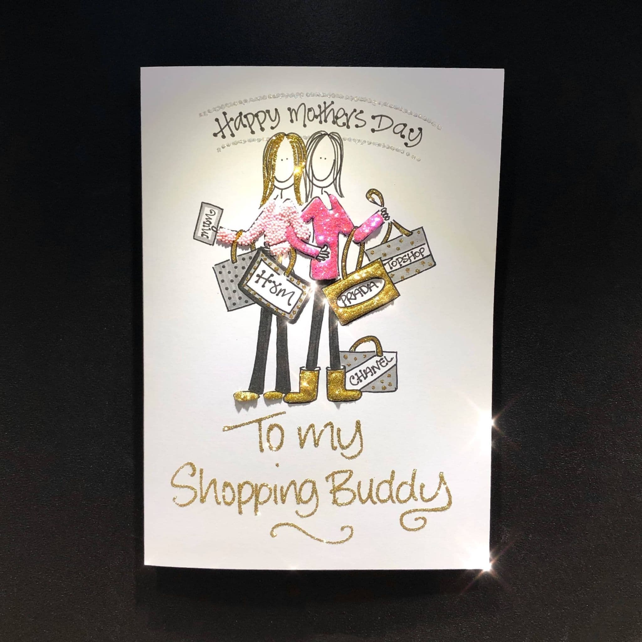 This card is designed for your own unique message to be placed below the shoppers as shown. Some colours may vary.
