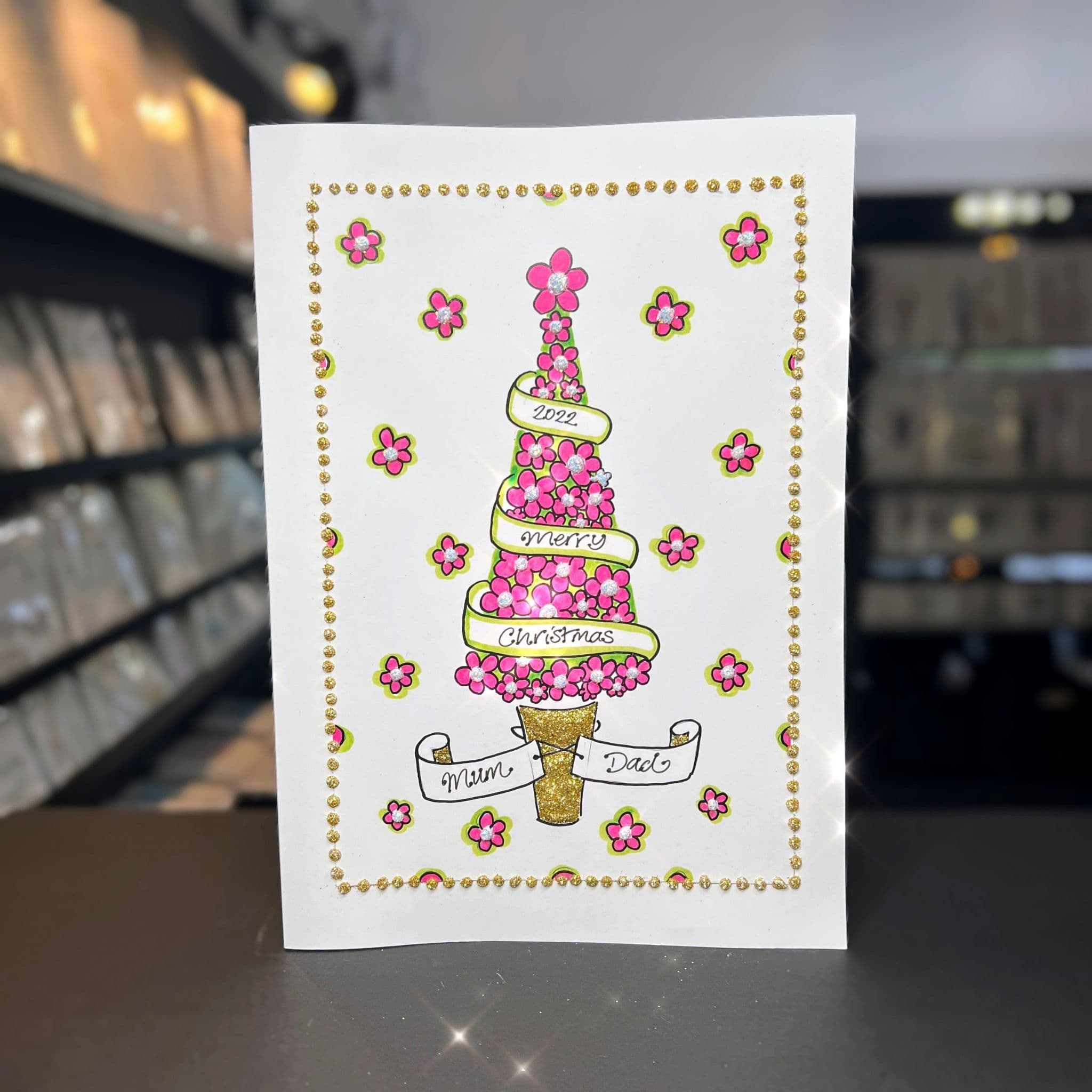This card is designed for your own personalised message to be placed through the scroll and names to be placed in the tags either side of the tree as shown.